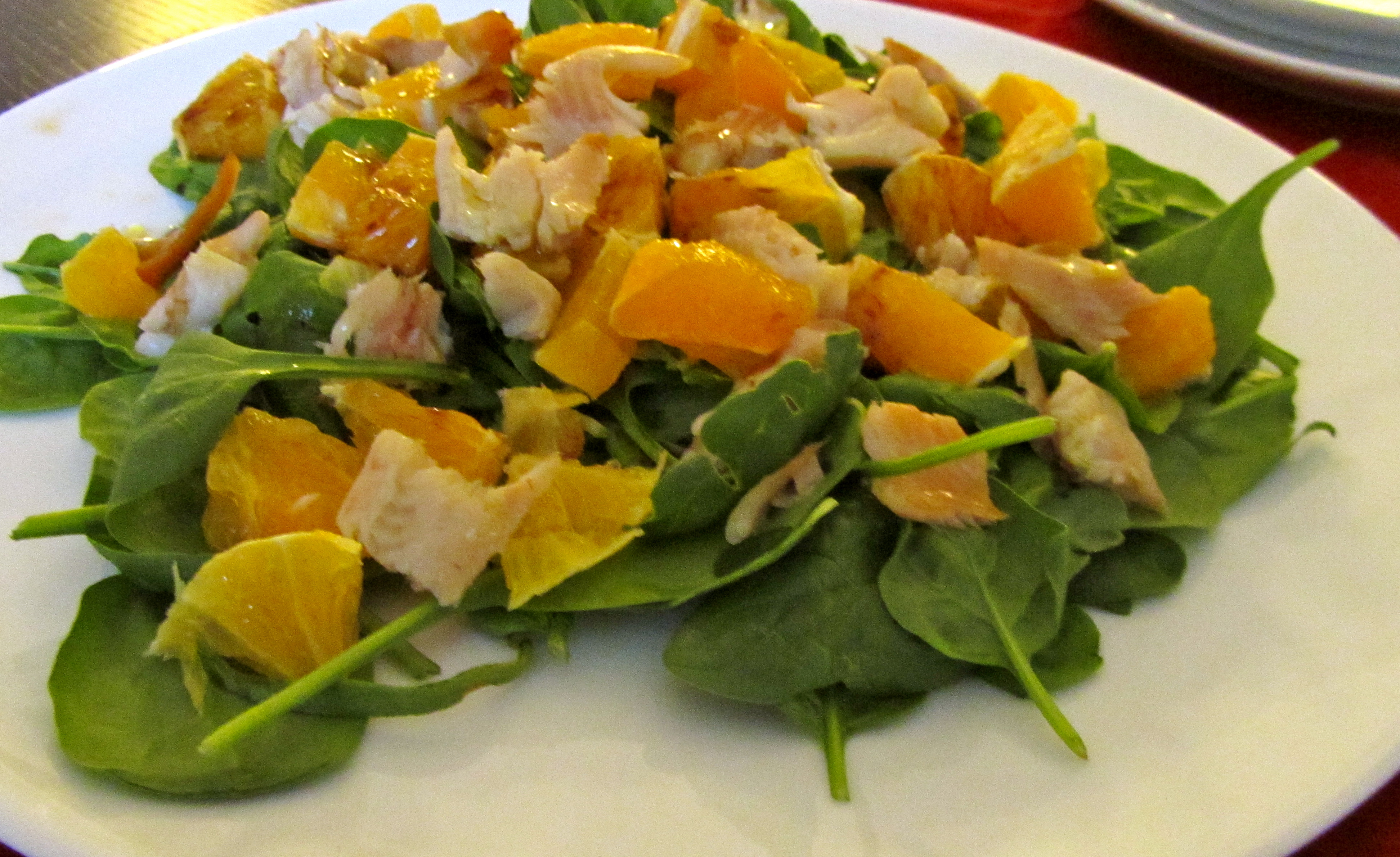 Posted: July 27, 2011 Filed under: Fish, Salad | Tags: Orange, Smoked trout, spinach Leave a commentIt is just one these salads perfect for Summer. I keep doing it over and over again, and no one seems to be tired of it. Although I am pretty sure this is a Gordon Ramsay dish, I forgot where I found it. But, in any case, if you want to be very precise, this actually is a variation of Gordon’s original recipe, which called for rucola. Mr Caramelised isn’t so fussed about it, so to keep domestic harmony I promptly replaced it with fresh spinach leaves. In all honesty, I didn’t have much problems to let the rucola go…