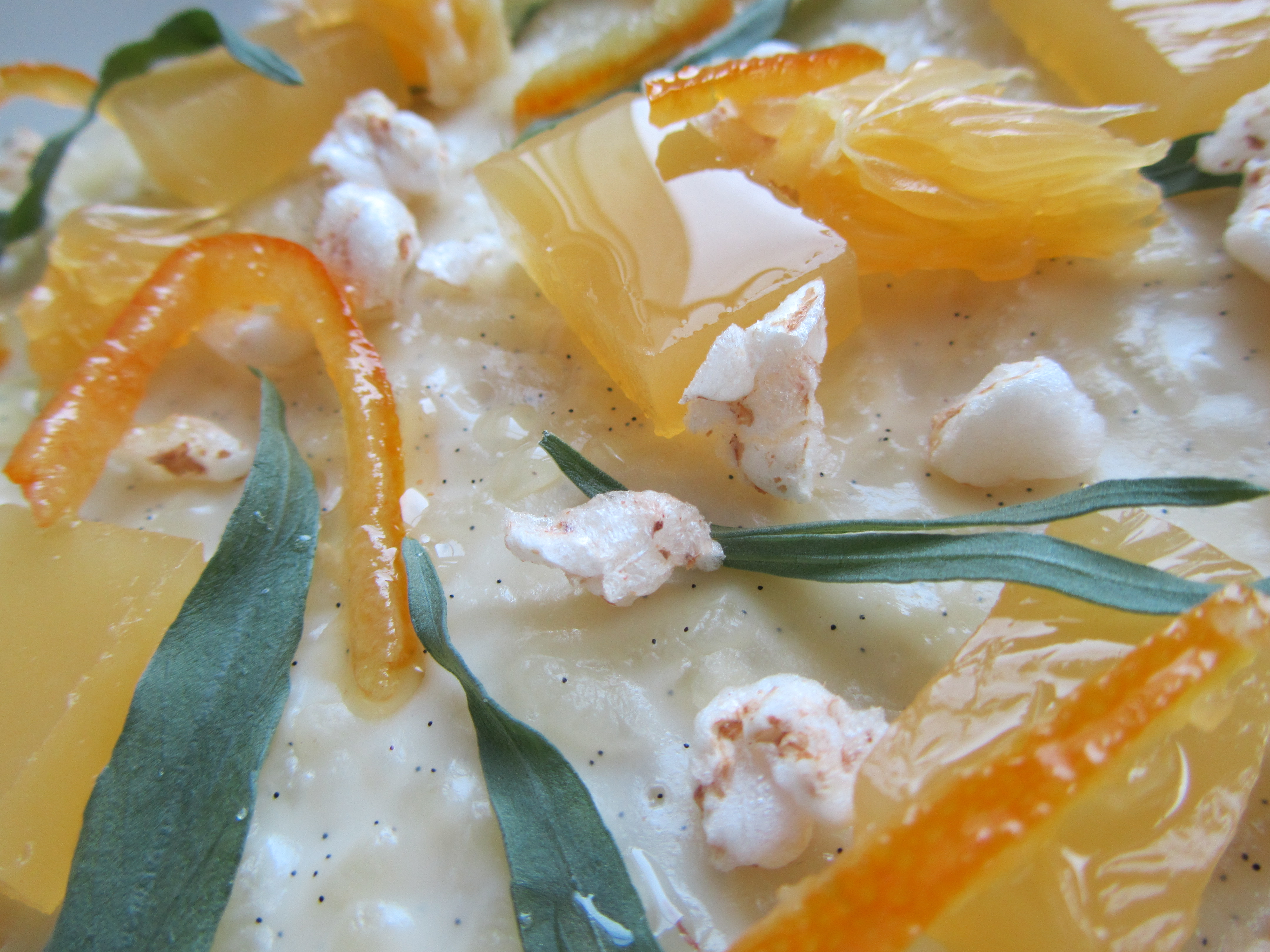 Rice Pudding with Orange Jewels, Tarragon and Puffed Rice