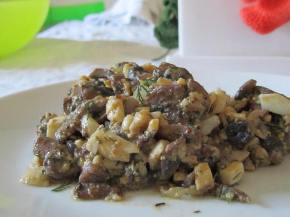 Posted: August 3, 2011 Filed under: Eggs, Salad, Vegetarian | Tags: Egg, Food blogger recipe, Herbs, Mushrooms, Salad 1 CommentI saw it on Orangette, who warned in no equivocal terms: this is not a beautiful egg salad. She was right. Indeed, this is not a good-looking salad. In fact, it is as ugly as dark stormy night. But, the flavors! Oh, the flavors! It is just something that you cook, and have to it eat. And eat it again. And again. And again… I now do it in relatively large batches, and try to make it last through the week by carefully rationing the portions. The flavors deepen over time, and can be eaten warm or cold. In the original recipe, the salad is served over toasted bread.