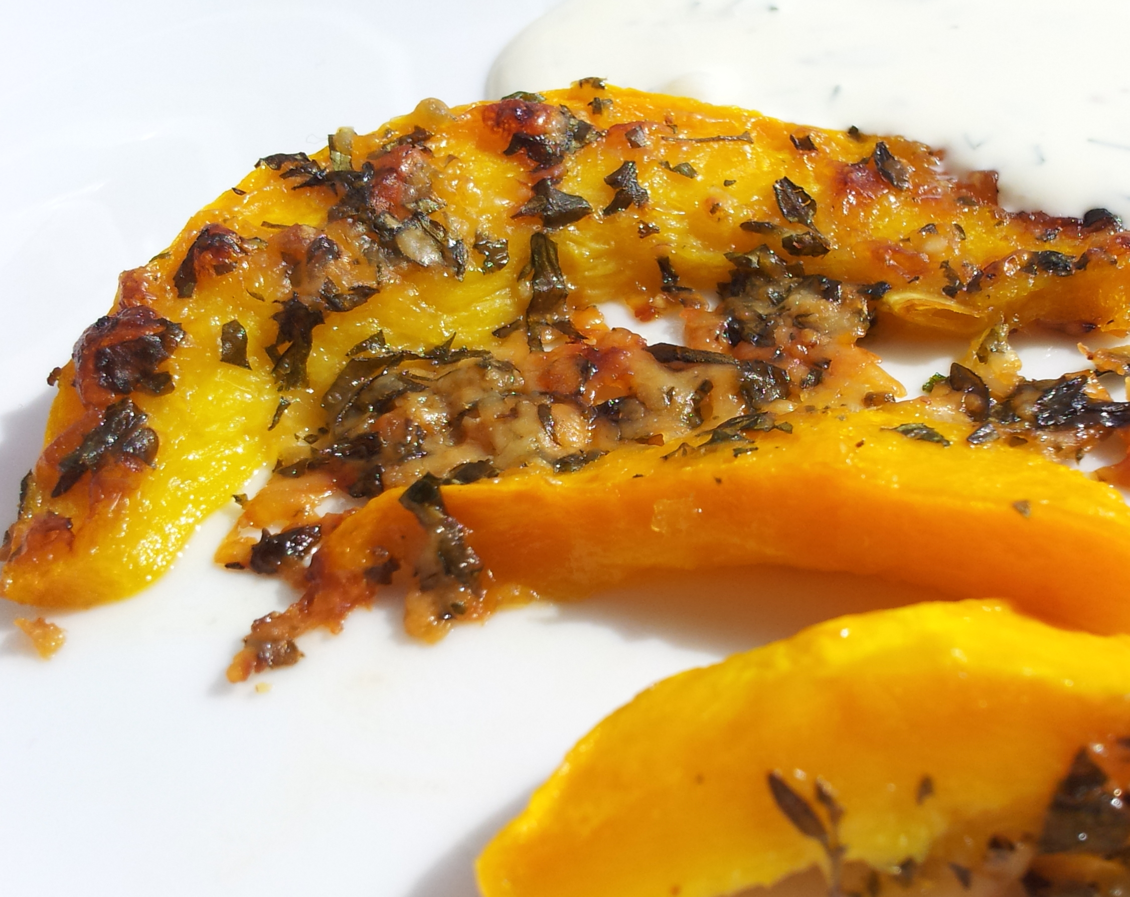 Roasted pumpkin wedges with sour cream (adapted from Yotam Ottolenghi’s Plenty)
