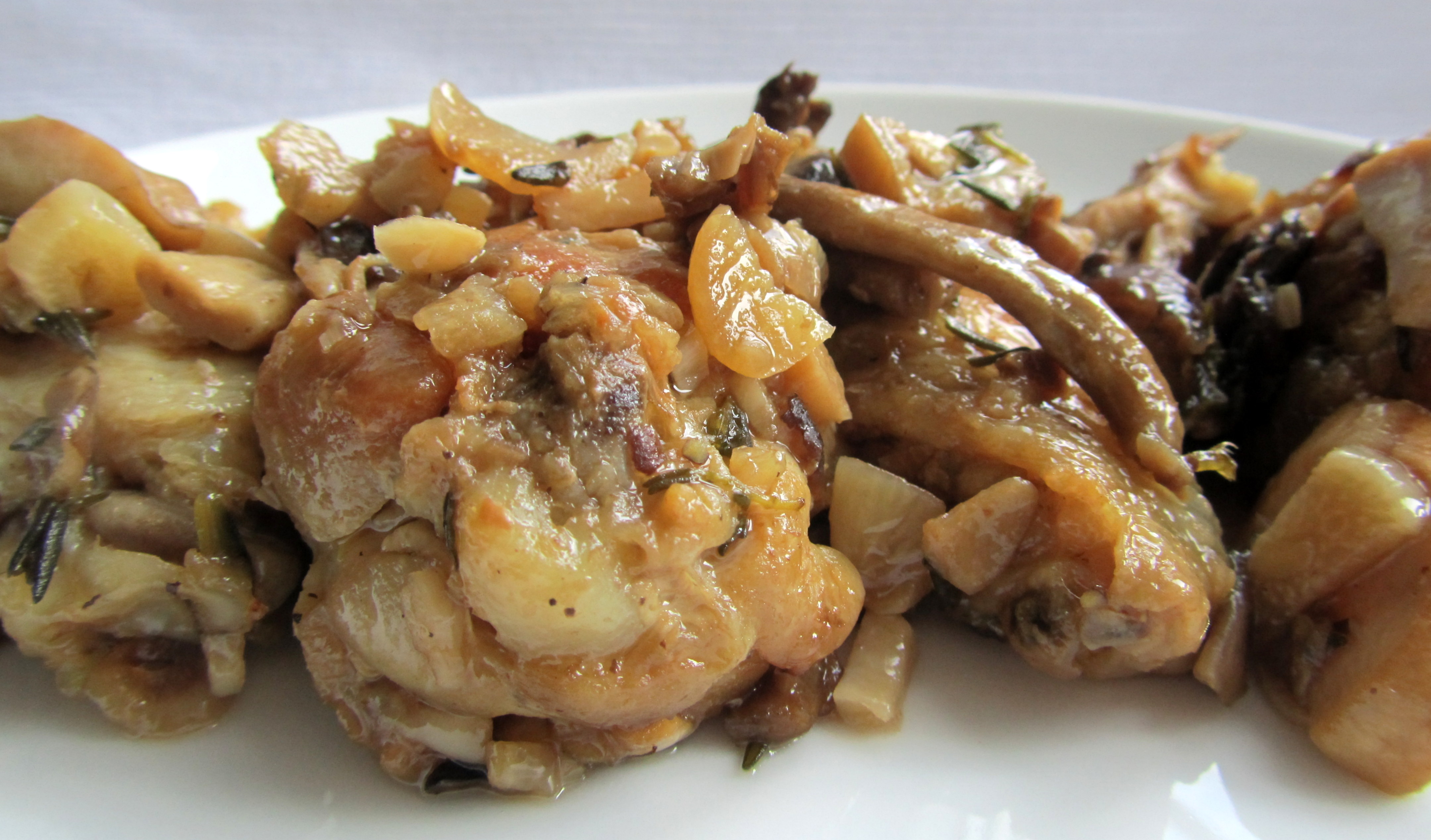 - 4 chicken thighs, skinned and cut in half