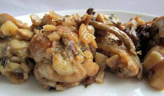 Posted: September 9, 2011 Filed under: Chicken, Vegetables, Wine | Tags: Chicken, Mushrooms, sauce, tarragon, Wine Leave a commentA confession – this dish is not my creation but have no idea where the recipe comes from… I found it some place lost in The Internets, made the dish and forgot to bookmark it. By the time I wanted to cook it again, was not able to find it and the details had washed away. So, I kind of have to recreate it from memory. After all, it is a good Summer dish. The white wine and tarragon flavors combine for a light and fragrant sauce, which compliments the chicken perfectly. Caramelising the onions with the star anise makes them feel meatier, a trick I have learnt from George Calombaris during one of his Masterchef Australia’s Masterclass. I found it had to believe, but it works and slightly aniseed flavor is also a bonus.
