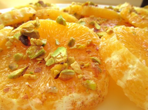 Posted: January 11, 2012 Filed under: Dessert, Fruit, Vegetarian | Tags: Gordon Ramsay, Honey, Orange, Pistachios Leave a commentAt some point over Christmas, I just felt the need to have something sweet but at the same time fresh and light. Meaning, a dessert that didn’t involve deep fried dough or extra sugary milk and eggs concoctions, all covered with even more sugar and a generous amount of cinnamon. While it was not sugar or cinnamon free, these fragrant orange slice were very nice break from all those Christmas excesses. And, for extra bonus, they provided the recommended daily dose of Vitamin C. Overall, it is super easy dish to do, and is ideal to finish a decadent rich meal. Original recipe was found in Gordon Ramsay’s Fast Food.