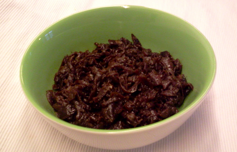 Add the balsamic vinegar and simmer for another 20min, until the vinegar is totally reduced and the onions look well preserved. Salt and pepper to taste.